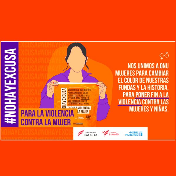 En Corporación Favorita creemos que cada acción cotidiana puede generar un impacto real. Por eso, cada noviembre, nuestras fundas cambian de color para visibilizar un mensaje urgente: no hay excusa para la violencia contra mujeres y niñas.