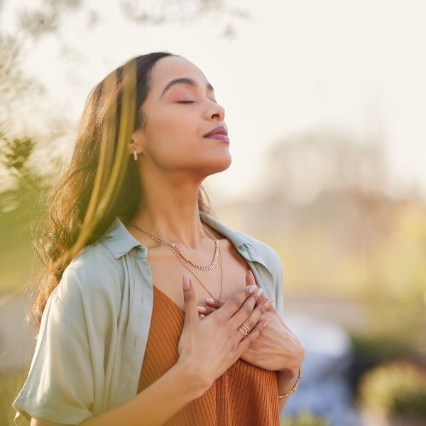 Cuando te sientas abrumada, respira en dos tiempos (una inhalación profunda + una corta adicional) y luego exhala lentamente. Este ejercicio reduce el estrés en segundos.